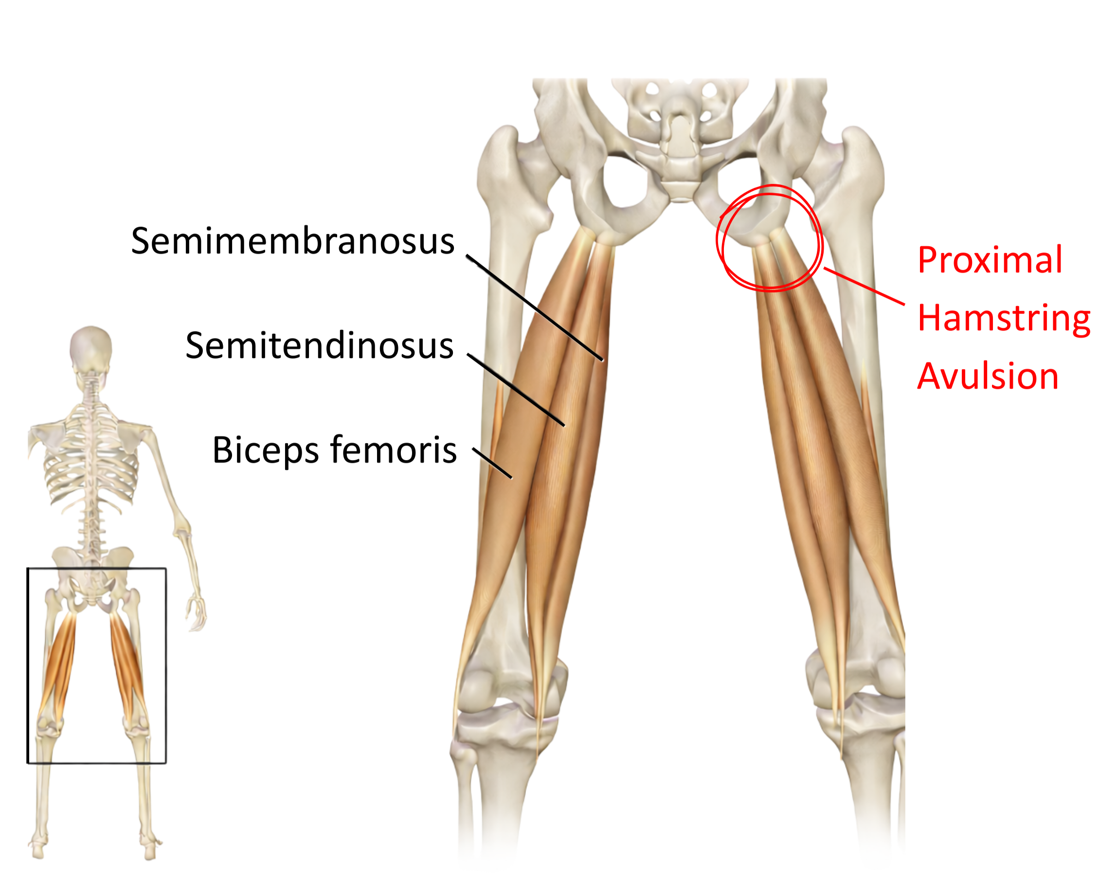 A proximal hamstring rupture/avulsion is when one or more of the hamstring tendons pull off the bone high up at the sitting bone (ischial tuberosity), rather than tearing in the muscle belly like a typical “strain.” That changes how it behaves, how it’s seen on MRI, and how we think about surgery vs rehab and return‑to‑sport.