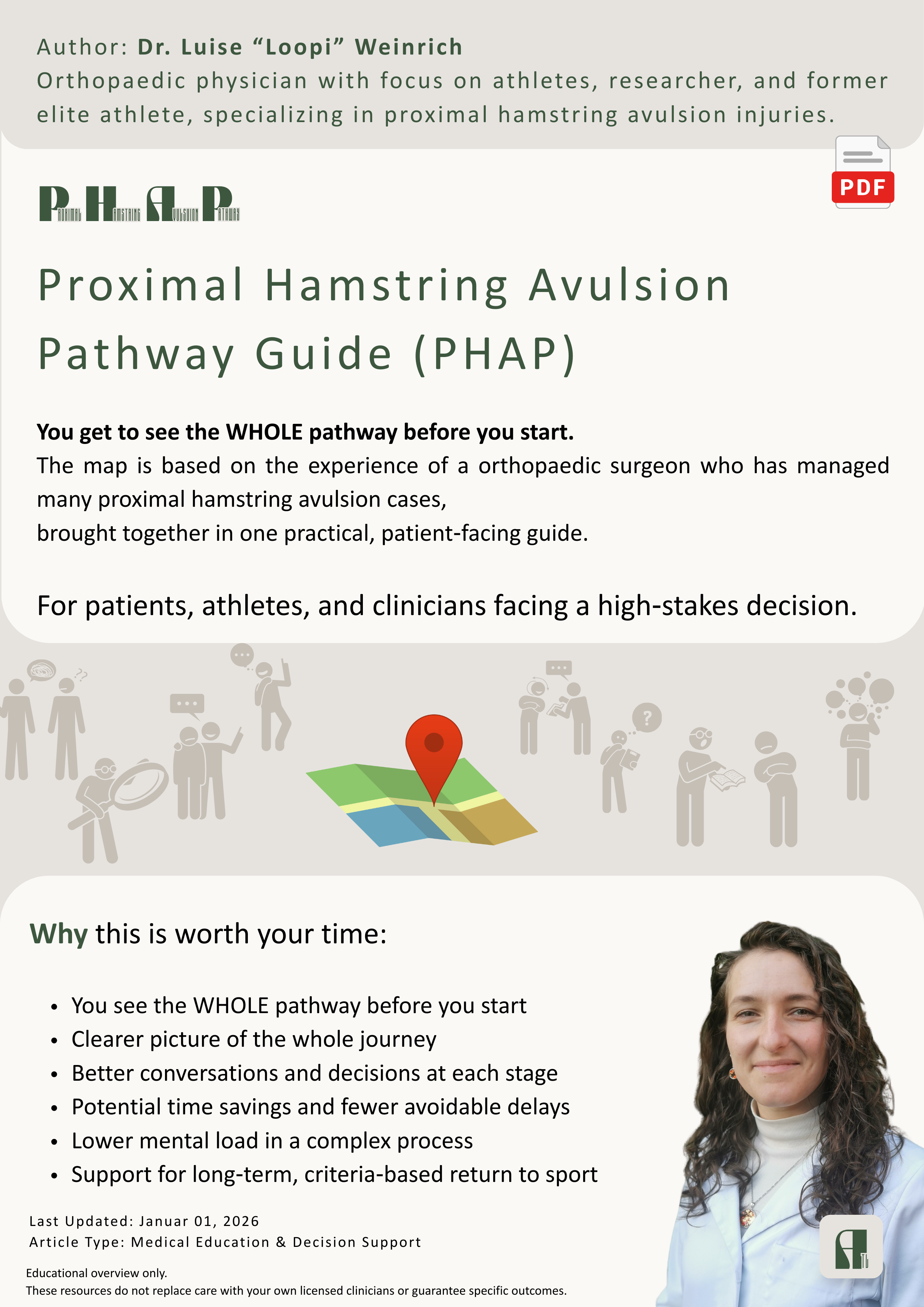 If you want the full, plain‑language version – what it is, how doctors read tendons and retraction, and where the real grey zones are – the Understanding Proximal Hamstring Avulsions Guide (UPHAG) walks through all of that in one place.